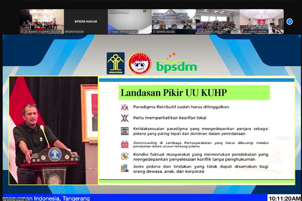 MAKASSAR, GOSULSEL.COM – Kantor Wilayah Kementerian Hukum Sulawesi Selatan (Kanwil Kemenkum Sulsel) mengikuti webinar Sosialisasi Undang-Undang (UU) No 1/2023 tentang Kitab Undang-undang Hukum Pidana (KUHP) dengan tema “Paradigma Modern dalam KUHP Baru” secara daring bertempat di Aula Pancasila Kanwil pada Kamis, (30/01/2025).
