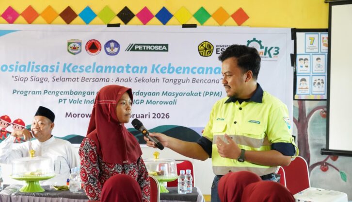 MOROWALI, GOSULSEL.COM — Upaya membangun generasi yang sadar risiko dan tangguh dalam menghadapi bencana terus diperkuat di Kabupaten Morowali, Provinsi Sulawesi Tengah. Melalui kolaborasi lintas sektor, PT Vale Indonesia Tbk (PT Vale) yang merupakan anggota holding Industri Pertambangan Indonesia (MIND ID), bersama Badan Penanggulangan Bencana Daerah (BPBD) Kabupaten Morowali dan mitranya PT Petrosea Tbk menggelar Sosialisasi Tanggap Bencana bagi Siswa Sekolah Dasar. Kegiatan ini berlangsung selama tiga hari, mulai 3 hingga 5 Februari 2026, dengan mengusung tema “Siap Siaga, Selamat Bersama: Anak Sekolah Tangguh Bencana.”