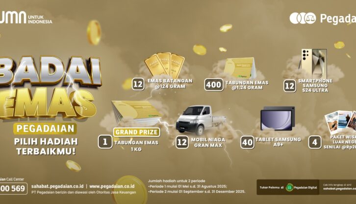 “Program Badai Emas Pegadaian Tahun 2025 diharapkan dapat memberikan semangat baru bagi nasabah untuk terus meningkatkan transaksi digital, sekaligus menjadi bentuk apresiasi atas kepercayaan memanfaatkan produk gadai, pembiayaan non-gadai dan layanan Bank Emas dari PT Pegadaian,” tambah Ngadenan.