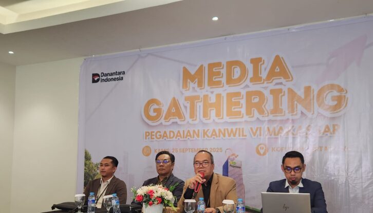 Pemimpin Wilayah PT Pegadaian Kanwil VI Makassar, Ngadenan saat menggelar media gathering, Kamis (25/9/2025). Menurutnya, cicilan emas hingga 15 September 2025 mencapai 500,3 kg. Tumbuh 128,64 persen secara tahunan atau year on year (yoy).