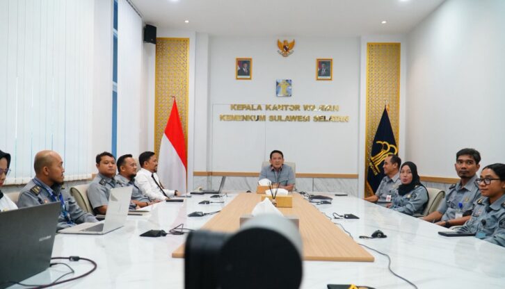 MAKASSAR, GOSULSEL.COM – Kepala Kantor Wilayah Kementerian Hukum Sulawesi Selatan (Kakanwil Kemenkum Sulsel), Andi Basmal, menekankan pentingnya peningkatan kinerja administrasi di lingkungan Kantor Wilayah. Hal ini ia sampaikan saat mengikuti secara virtual kegiatan Penutupan Pelatihan Teknis Manajemen Kesekretariatan bagi Kepala Bagian Tata Usaha dan Umum (Kabag TU dan Umum) yang diselenggarakan oleh Badan Pengembangan Sumber Daya Manusia (BPSDM) Hukum, Selasa (9/9).