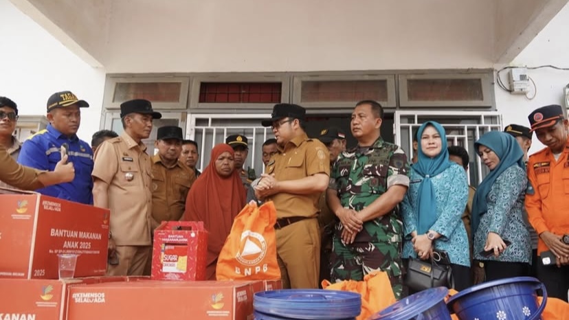 Dalam kesempatan itu, Wakil Bupati menyerahkan berbagai bantuan darurat seperti logistik, selimut, beras, tikar, serta perlengkapan anak-anak kepada warga yang rumahnya rusak akibat bencana.
