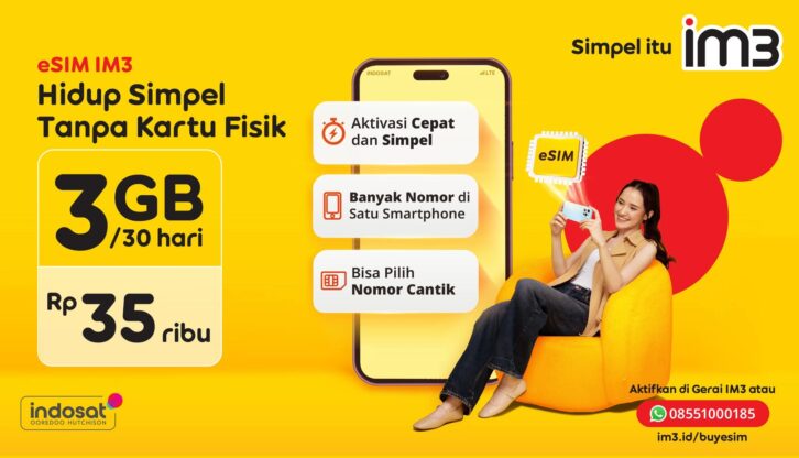 Pelanggan dapat mengaktifkan eSIM di gerai IM3 atau melalui layanan WhatsApp di 085510000185. Informasi lengkap juga tersedia di situs resmi im3.id/buyesim.