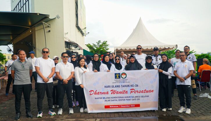 MAKASSAR, GOSULSEL.COM – Dharma Wanita Persatuan (DWP) Kantor Wilayah Kementerian Hukum Sulawesi Selatan (Kanwil Kemenkum Sulsel) tampil menonjol dalam kegiatan Jalan Sehat yang digelar pada rangkaian Layanan Hukum Car Free Day (Lankum Carady), Minggu, (07/12/2025).