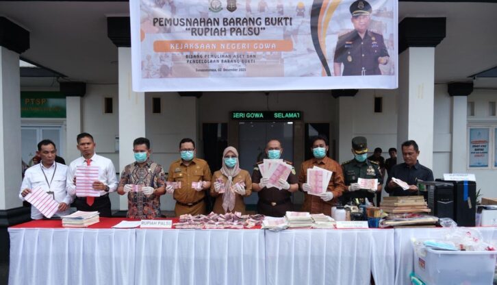 Pemusnahan ini merupakan hasil penegakan hukum terhadap 12 perkara dengan total 15 terdakwa yang terlibat dalam pembuatan, pembiayaan, pencetakan, hingga peredaran uang palsu di wilayah Kabupaten Gowa beberapa waktu lalu.